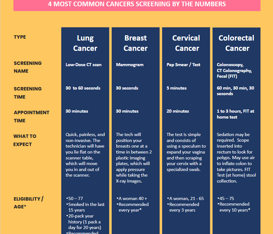 How Much Time Does a Cancer Screening Take: 4 Most common cancers screening by the numbers